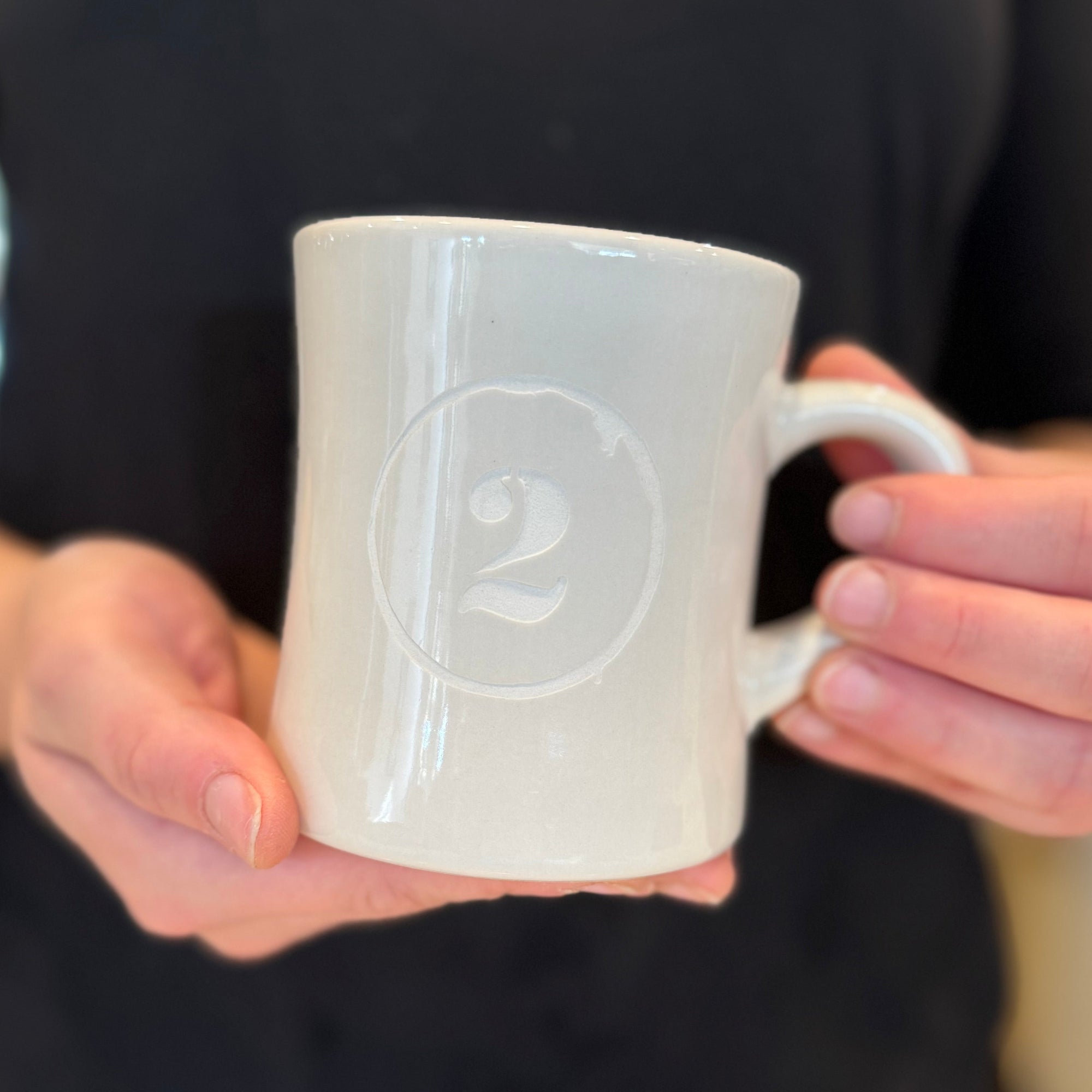 This year, looking for something different, I did a deep dive into google searches until I found a company that could fulfill my debossing desires. It's off-white, heavy duty, less flashy than our printed mugs. It's boss. I like it.