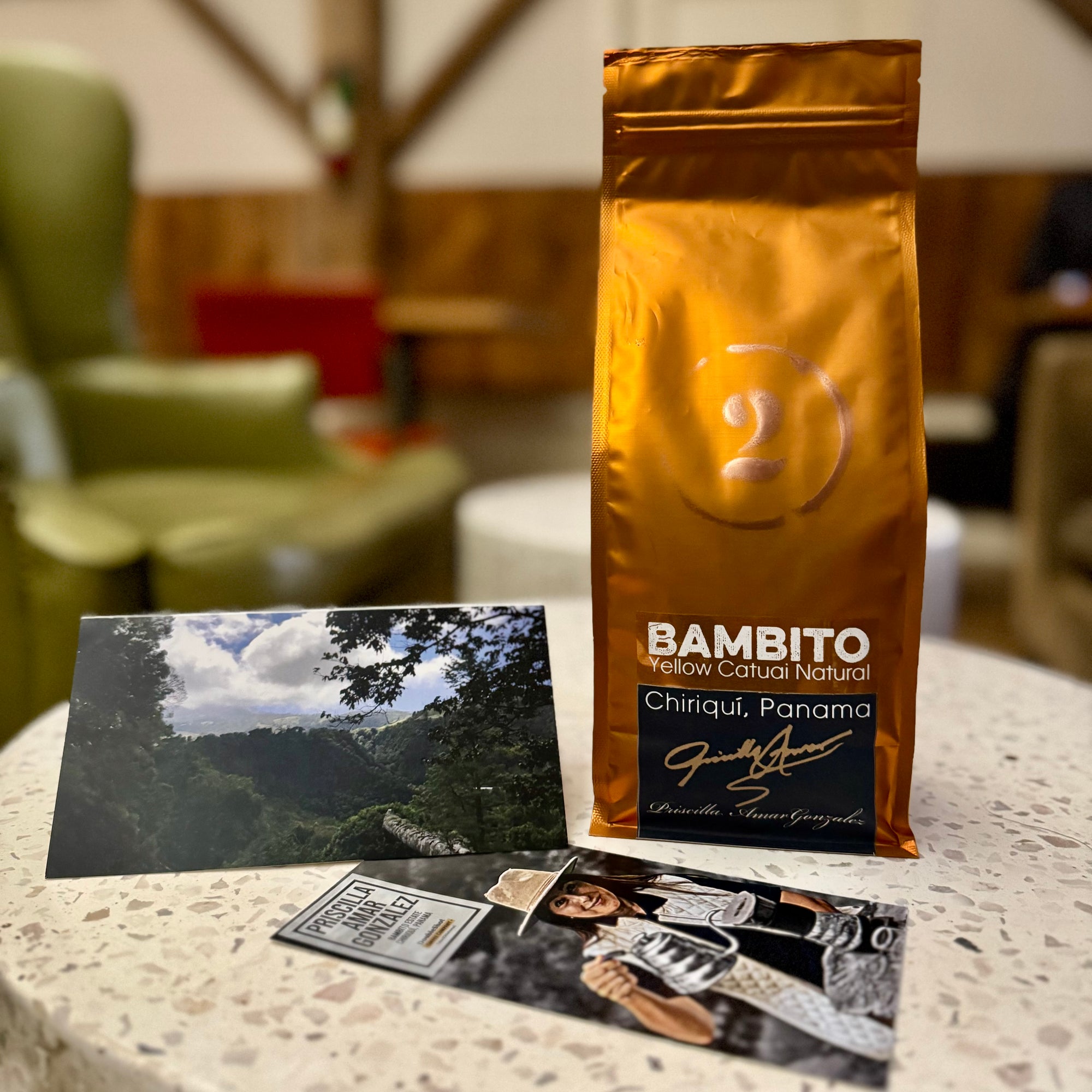 - This is it. This is my favorite coffee of 2025. You might not be surprised that it’s from Panama, as so many of our holiday coffees have been throughout the years. Priscilla and her son, Ivan, at Bambito Estate have proven to be some of the most talented coffee producers in a region where many of the world’s best reside. We are proud to call them friends, and I’m fortunate to have the opportunity to roast this coffee. It’s a Yellow Catuai, fermented anaerobically for 3 days with Saccharomyces cerevisiae, which is a wine yeast Priscilla and Ivan used in order to control the rate of fermentation. The coffee was then dried on raised African-style beds for 18 days, preserving the sweetness and complexity drawn out through fermentation. This meticulous processing created a coffee that you have to taste to believe.