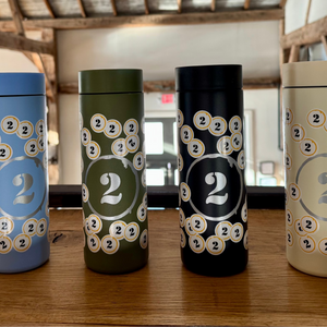 I've long admired Miir's designs and craftsmanship, but this is the first tumbler we've sold from them. It's double-walled stainless, available in four colors. I designed it with the DoubleShot icon dead center and a smattering of cruzin caps all around, just like the old red door at 18th & Boston and the light pole here at 17th & Boulder. Add your own to it if you please.